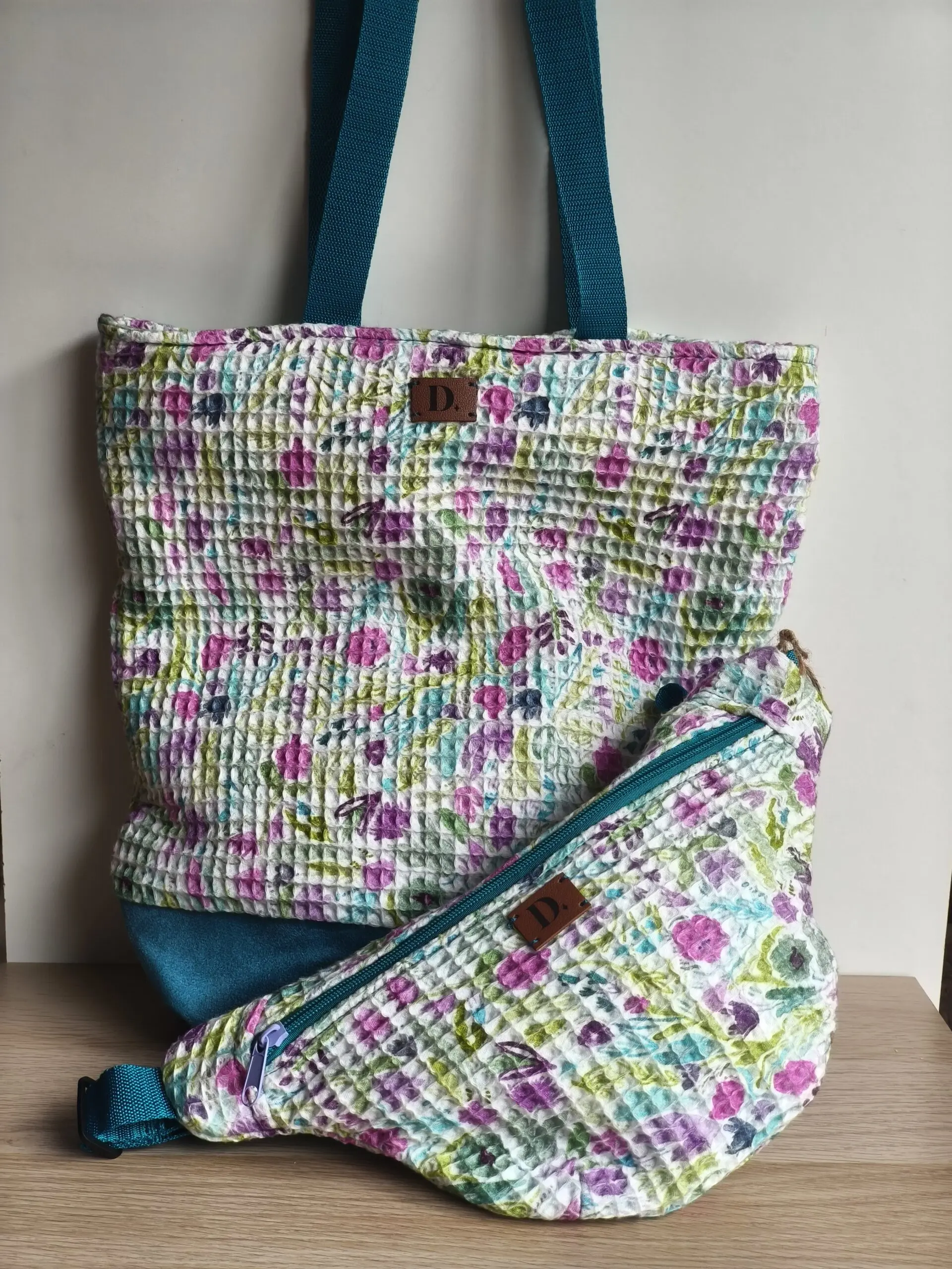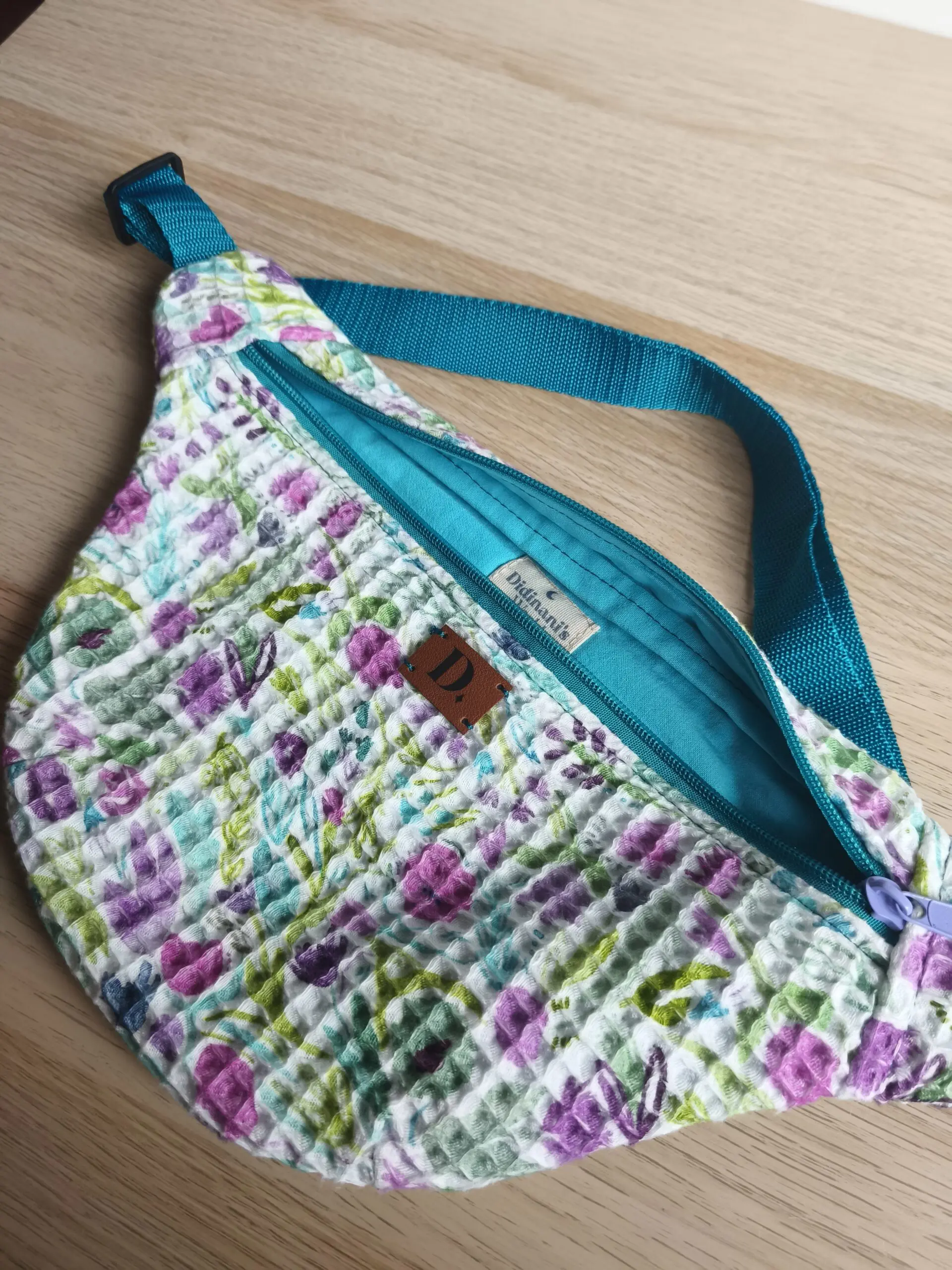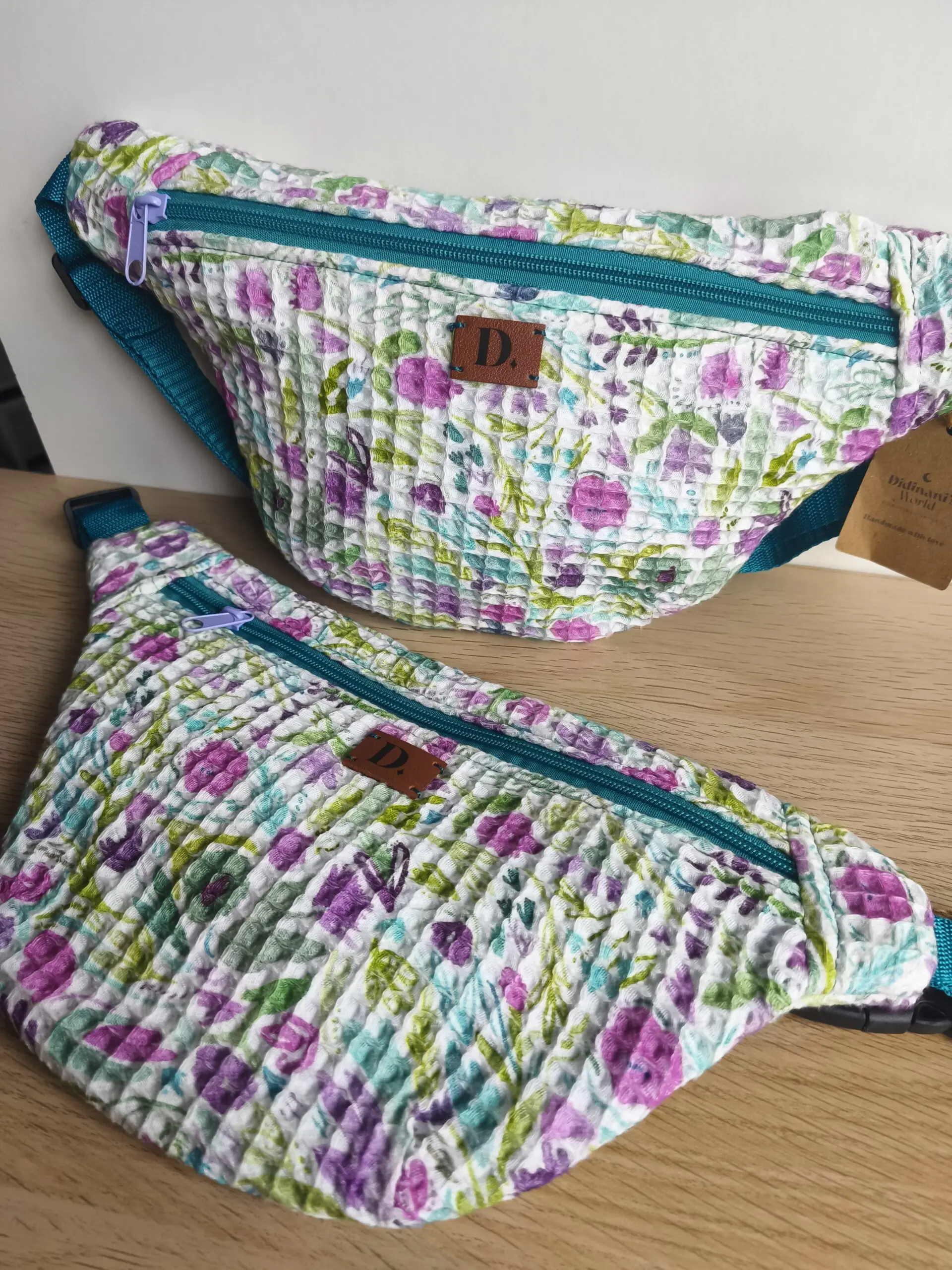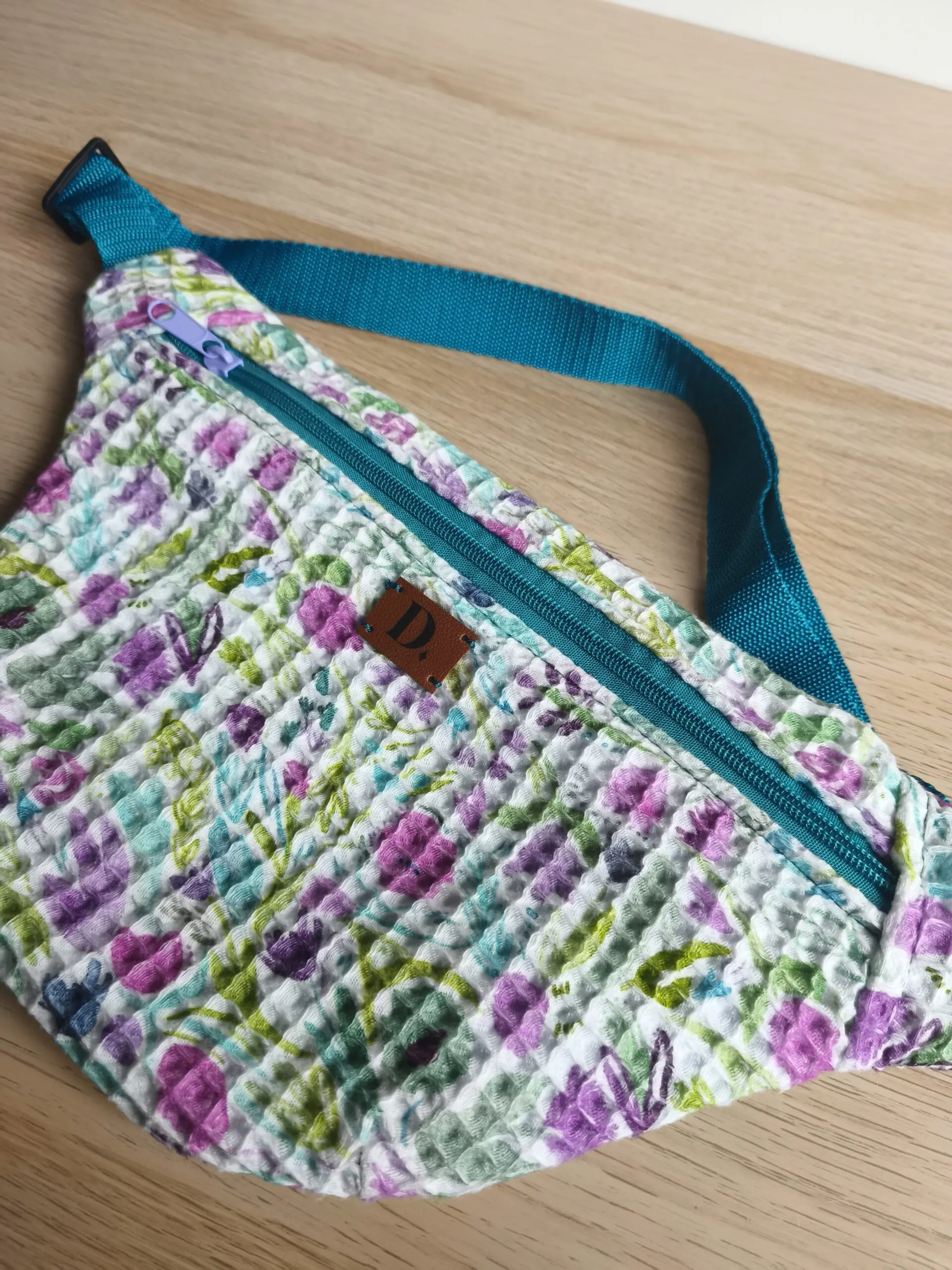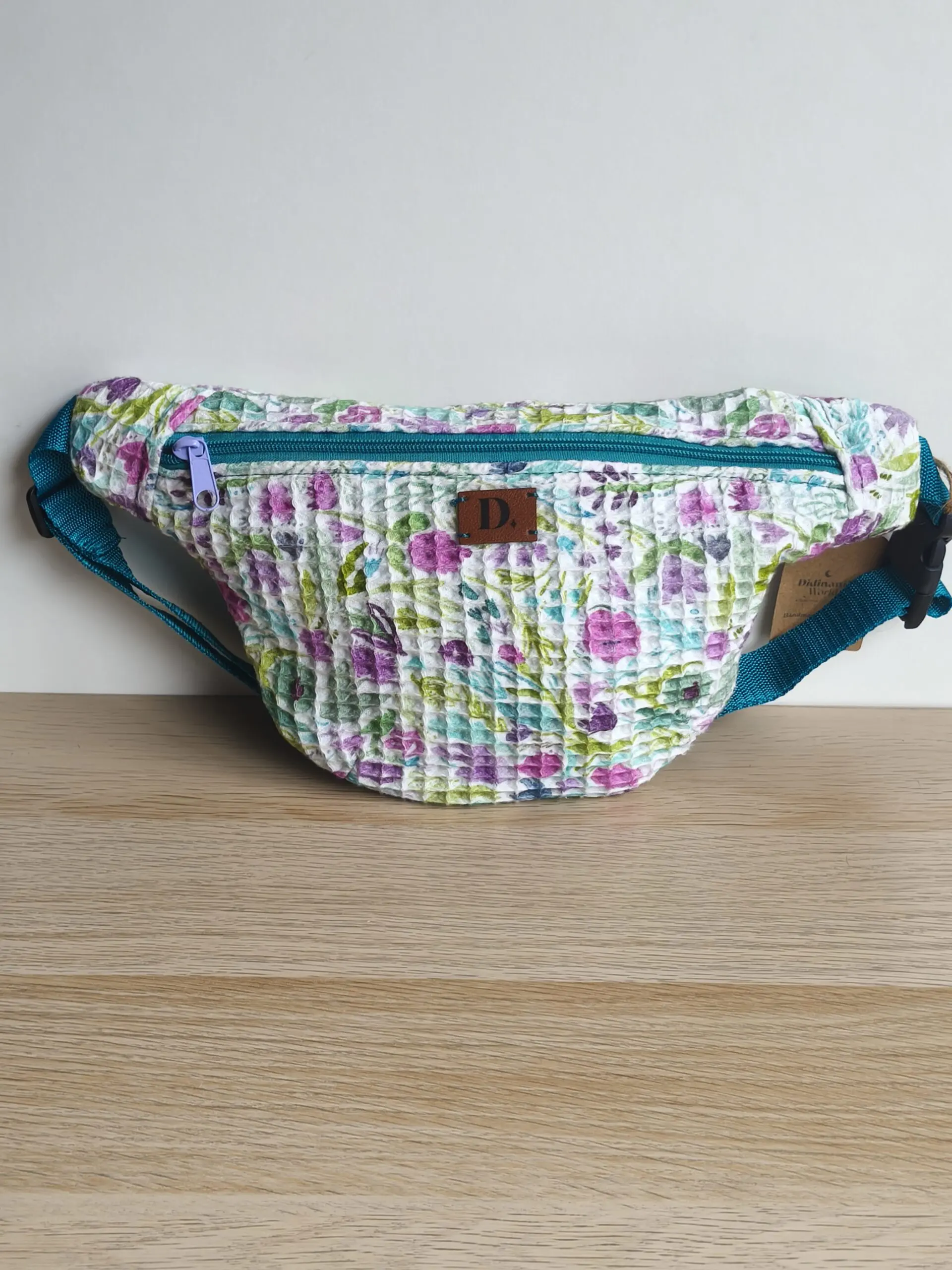 Riñonera “Waffle Blue Spring” – 35 x 18 cm | Algodón 100%